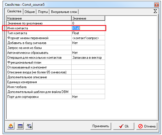 Рис. 5. Свойства блока В качестве имени сигнала можно использовать как латинские, так и русские названия, при этом система автоматически транслитерирует русские наименования в латинские по следующей таблице: