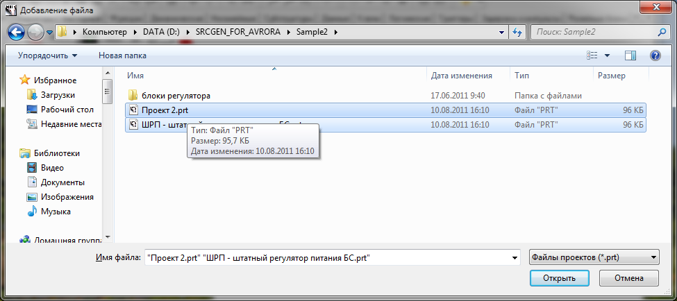 Рис. 3. Выбор файлов проекта