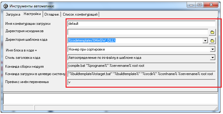 производится в закладке "Настройки" рабочего окна "Инструменты автоматики", показано на