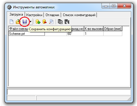 - Сохранить конфигурацию инструментов автоматики. Конфигурацию сохраняют нажатием левой