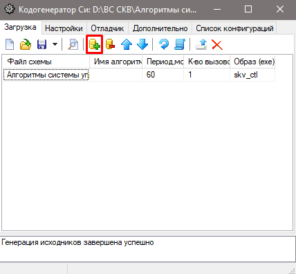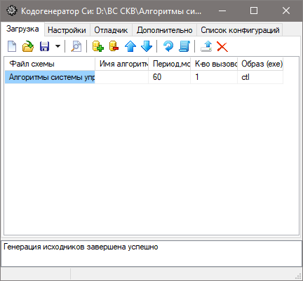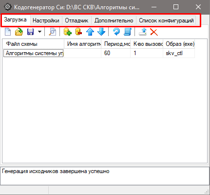 Рис. 10. Вкладка "Загрузка" после завершения кодогенерацииЕсли генерация кода была завершена успешно, то в результате кодогенерации в