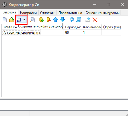 Сохранить конфигурацию – сохраняет текущую конфигурацию с