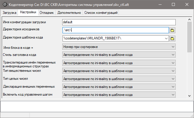 Рис. 2. Окно "Кодогенератор СИ"Данное окно можно разделить на четыре области: