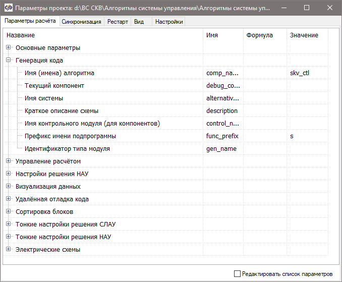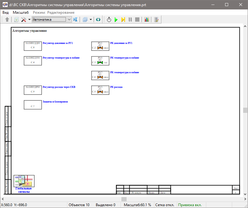 Рис. 2. Окно проекта, "Алгоритмы системы управления.prt"