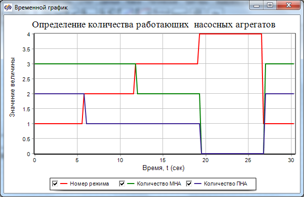 Номер режима работы станции в программе выполнен в виде блока чтения сигнала из базы данных. Запустим на расчет программу.