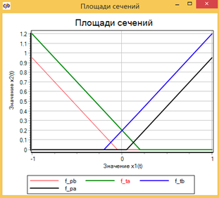 Видно, что в нашем случае площади щелей РА и ТВ, ТА и РВ ведут себя попарно одинаково. Когда открыты щели РА и ТВ, щели ТА и РВ закрыты. И наоборот.