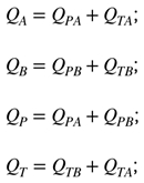 На выходе мы получаем вектор из 4 расходов QPB, QTA, QTB, QPA.