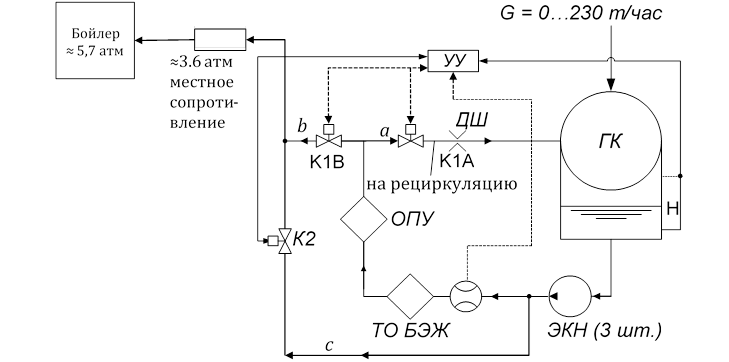 ЭКН – блок электро-конденсатных насосов (3 насоса типа ЭКН-125/140, 2 в работе);