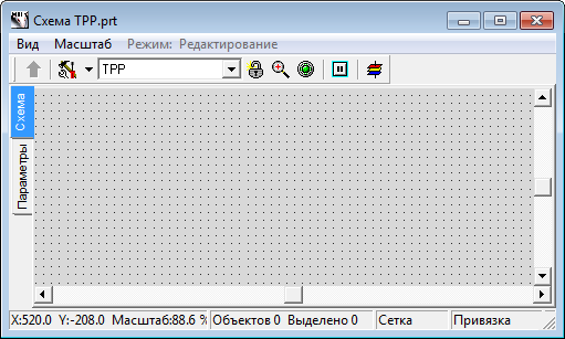 После этого откроется новое схемное окно, в котором и будет происходить создание структурной схемы теплогидравлики (см. Рис. 2).