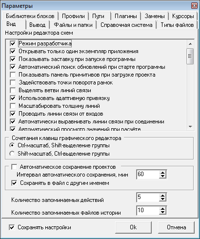 Для проверки подключения базы данных во вновь созданном проекте теплогидравлики необходимо перевести SimInTech в режим разработчика, для этого нужно в главном меню программы выбрать пункт "Файл", затем подпункт "Параметры". В появившемся диалоговом окне "Параметры" перейти на закладку "Вид" и установить галочку в опции "Режим разработчика" (см. Рис. 4).