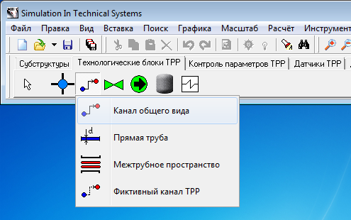 Для создания схемы используются блоки, расположенные в закладке "Технологические блоки ТРР" палитры блоков (см. Рис. 7).
