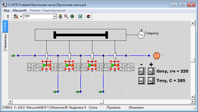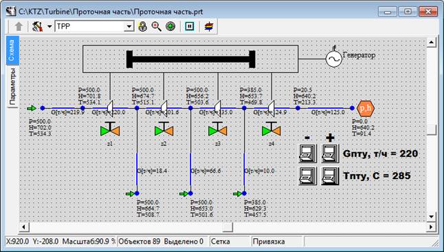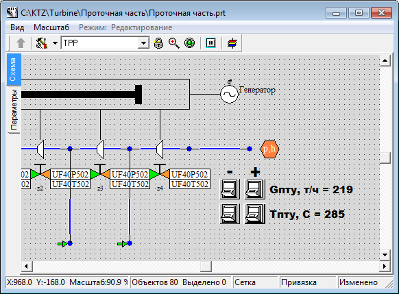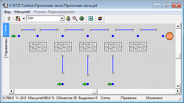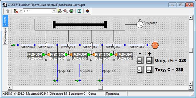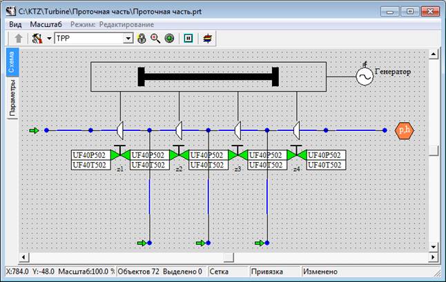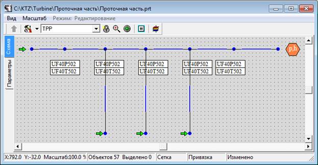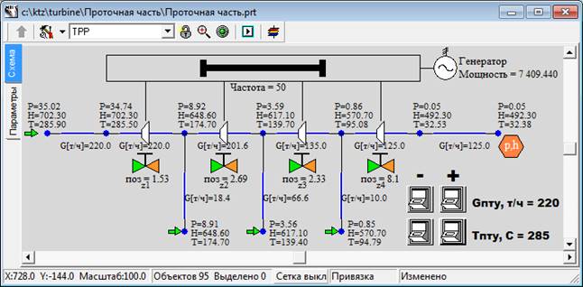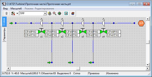 На этом набор схемы проточной части турбины завершён, далее предстоит процесс отладки схемы и номинального состояния проточной части в соответствии с исходными данными.