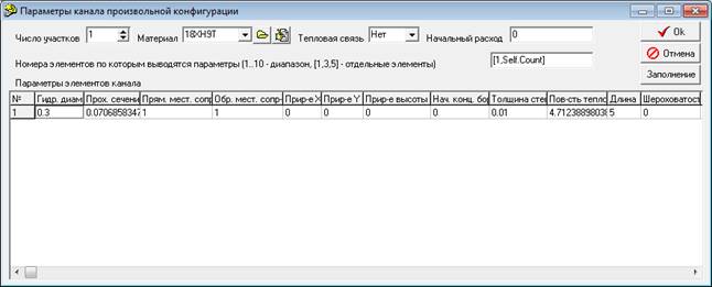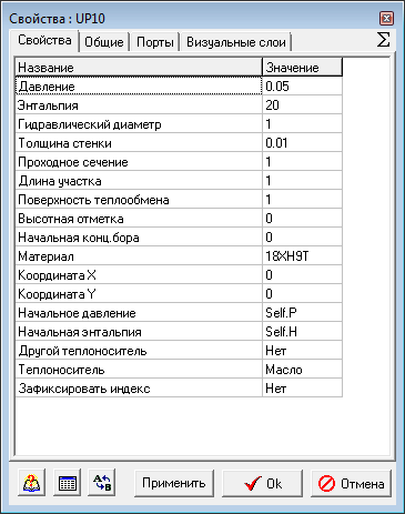 Сейчас нам важно задать верные гидравлические диаметры, проходные сечения и поверхности теплообмена, на остальные параметры пока можно не обращать внимания. Задайте также материал для трубопроводов проточной части – "Ст20". Это влияет на теплообмен.