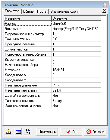 steampt(Pпту*1e5,Tпту,3)/4182– получаем ккал от давления и температуры. - Гидравлический диаметр: 1