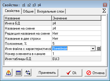 Теперь, задайте для всех задвижек начальное положение в процентах, равное 5. Имя файла с характеристикой – "Линейная", см. Рис. 21 и Рис. 22.
