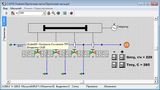 Для моделирования проточной части нам потребуется 9 каналов общего вида, 5 внутренних узлов ТРР, 4 граничных узла типа G, один граничный узел типа P и еще некоторые элементы…
