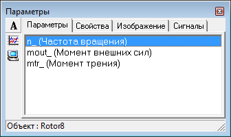 Выведем еще частоту вращения ротора и текущую мощность генератора при помощи аналогичного механизма, только через меню "Параметры" для каждого элемента.