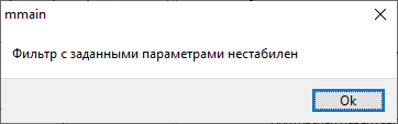 "Ошибка численного расчета фильтра. Рекомендуется уменьшить порядок фильтра" -