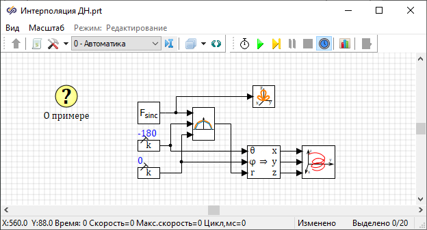 Данный проект демонстрирует интерполяцию диаграммы направленности (ДН) вида sinc(x)