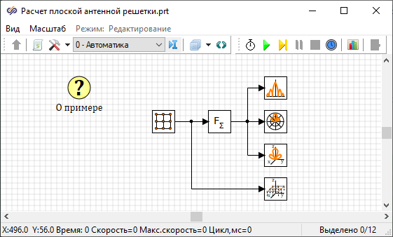 Данный проект демонстрирует расчет диаграммы направленности (ДН) плоской антенной