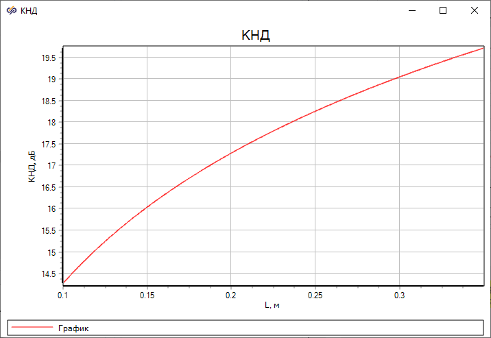 Выводится в виде графика зависимости КНД от длины стержня при фиксированном