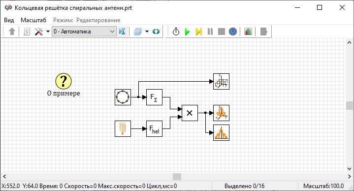 Массив данных передается по линии связи в блок Множитель АР, имеющий те же параметры, что и блок ДН спиральной антенны.