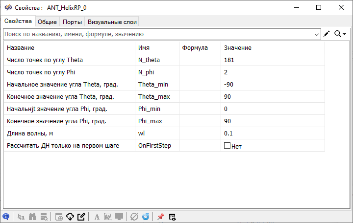 В блоке Спиральная антенна задаются исходные параметры цилиндрической