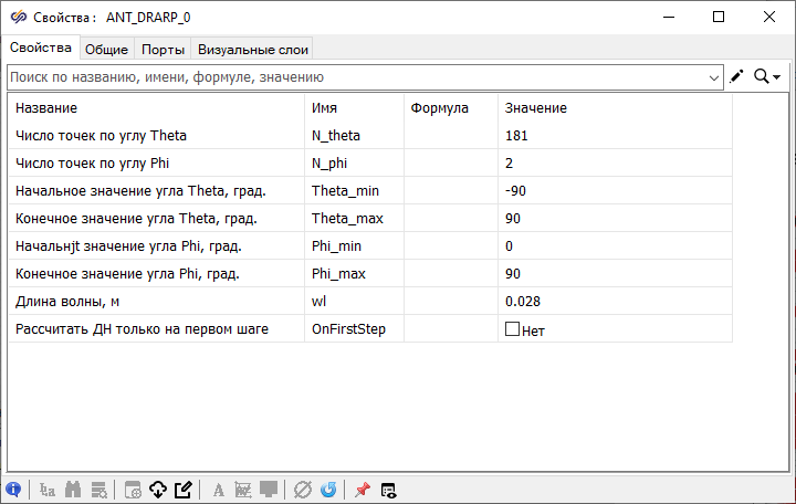 Полученные результаты выводятся с помощью блоков Диаграмма направленности 2D