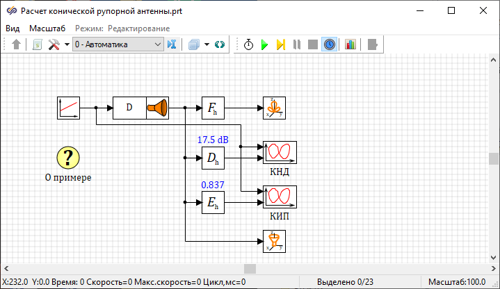 SimInTech/Demo/Антенны/Рупорные антенны/Расчет конической рупорной антенны/Расчет конической рупорной антенны.prt