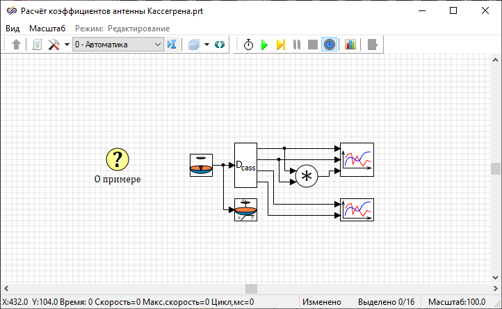 SimInTech/Demo/Антенны/Зеркальные антенны/Расчёт коэффициентов антенны Кассегрена/Расчёт коэффициентов антенны Кассегрена.prt
