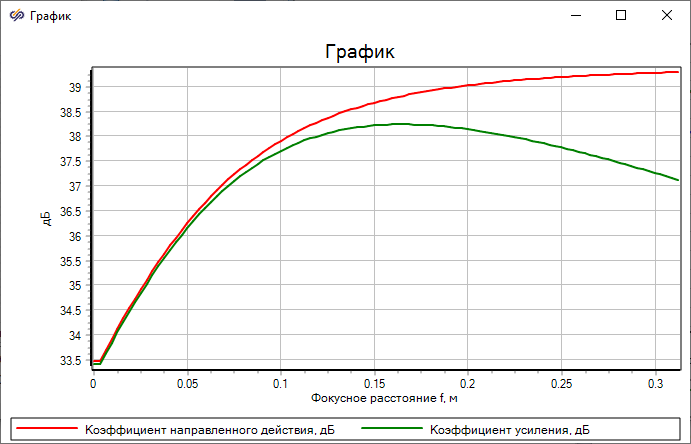 Пример расчета параметров антенны Кассегрена в зависимости от фокусного расстояния