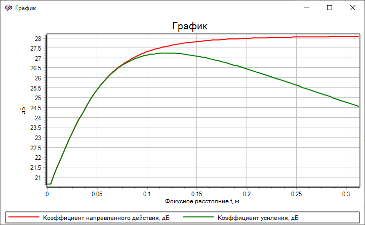Пример расчета параметров зеркальной антенны – параболоида вращения в зависимости от фокусного расстояния