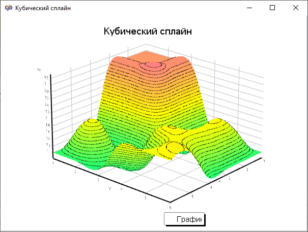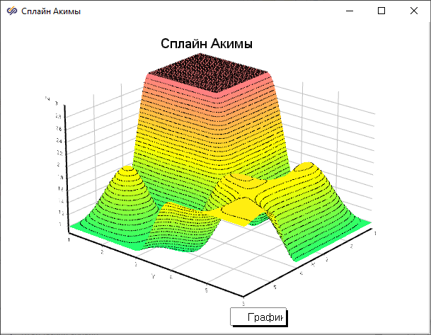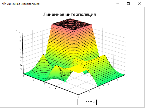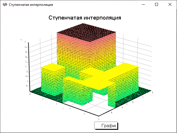 Данный проект демонстрирует возможности библиотеки "Интерполяция" для интерполяции двумерной поверхности. В проекте осуществляется сравнение различных методов интерполяции: ступенчатой, линейной, кубическим сплайном и сплайном Акимы.