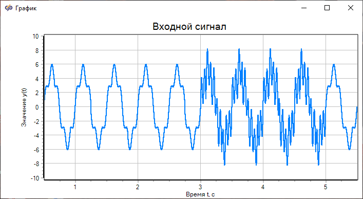 - гармоники с частотой 2 Гц и амплитудой 5, которая постоянно присутствует в сигнале