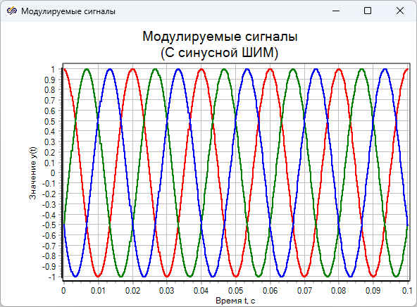 Рис. 5. График модулируемых сигналов ШИМ с полным использованием напряжения