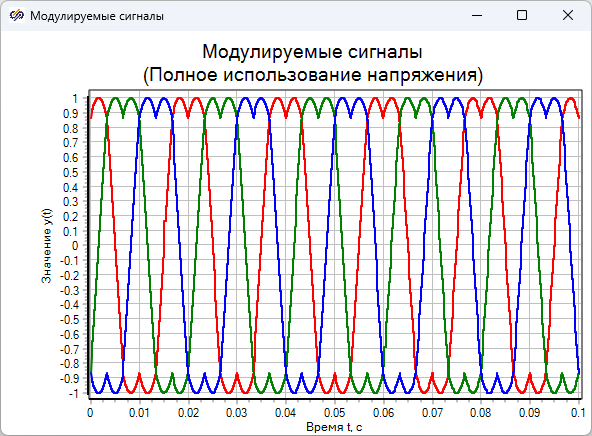 На графике "Модулируемые сигналы (Полное использование напряжения)" показаны графики