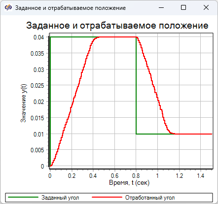 На графике "Заданное и отрабатываемое положение" показан заданный и отработанный