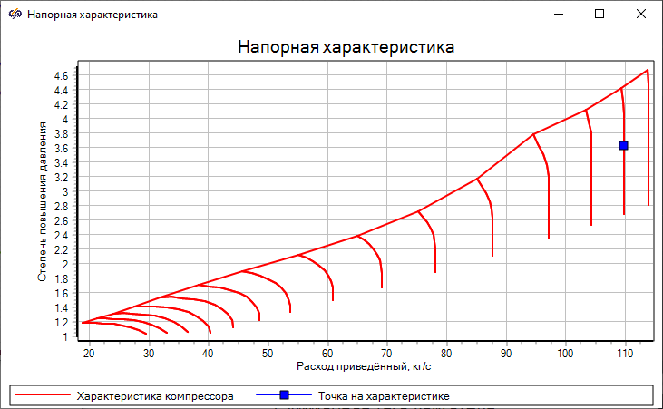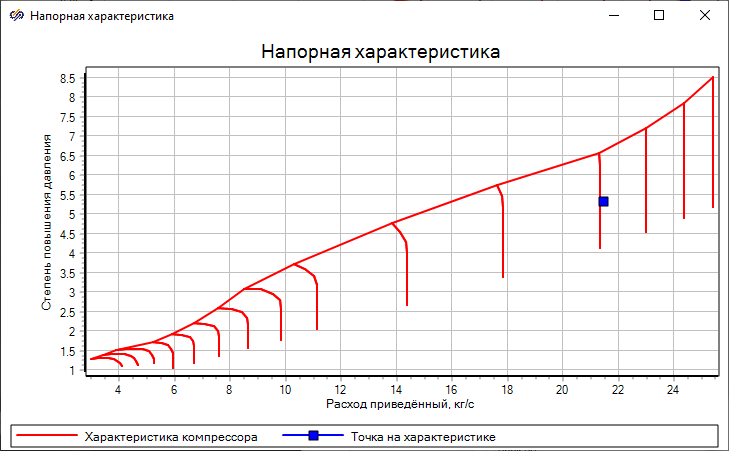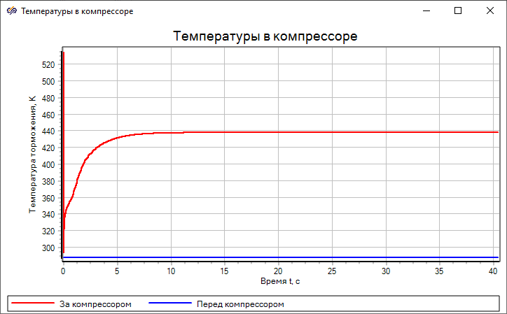 Во втором блоке "Компрессора", который моделирует компрессор высокого давления, по заданной характеристике, частоте вращения которая определяется блоком "Ротор ГГ", являющимся ротором высокого давления, и противодавлению, получаемому с помощью блока "Камера сгорания", формируются основные параметры газа (давление, температура, расход), которые являются входными для блока "Камера сгорания"