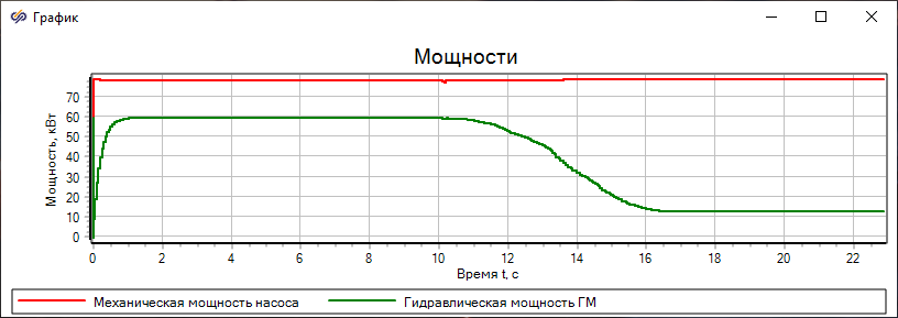 При этом разница между мощностями увеличивается, что свидетельствует о снижении КПД гидропередачи на данной режиме.