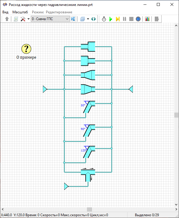 Данный проект демонстрирует возможности библиотеки "Гидросистемы" для моделирования