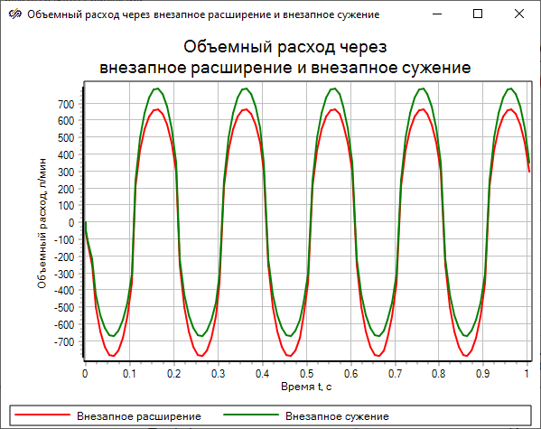Рис. 2. Объемный расход через внезапное расширение и внезапное сужение.