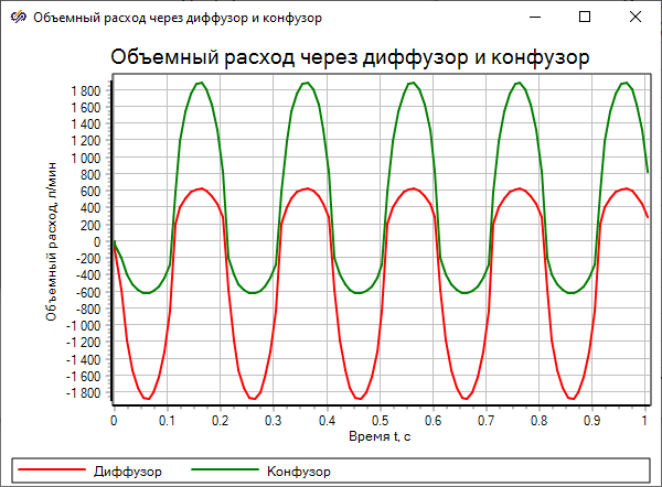 Рис. 3. Объемный расход через диффузор и конфузор.