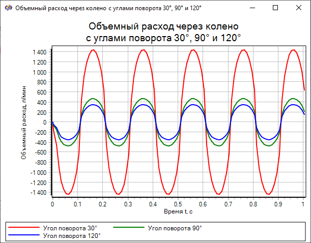 На графиках отображается объемный расход (л/мин) через проточные части рассматриваемых