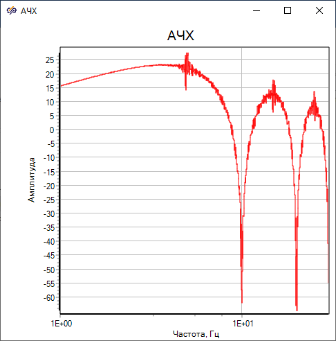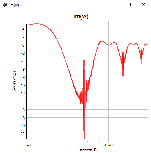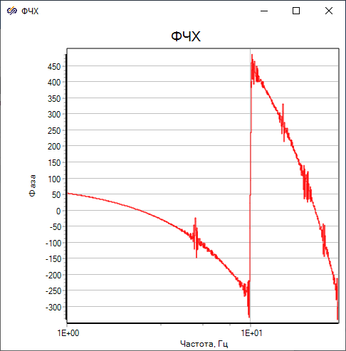 С помощью блока "Гармонический анализатор" рассчитываются значения амплитудно-частотной характеристики (АЧХ), фазо-частотной характеристики (ФЧХ), действительной и мнимой части амплитудно-фазовой частотной характеристики (re(w) и im(w)) исследуемой системы.