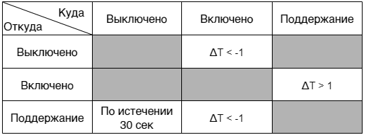 - если нагревать "Выключен", и насос "Включен", то система в режиме "Поддержание";