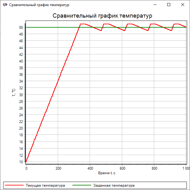 Перемещая ползунок примитива "Линейная шкала", находящегося в области "Управление температурой" возможно изменять температуру воды, которую необходимо поддерживать, Tset.
