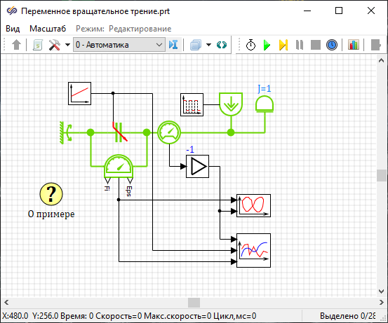 SimInTech\Demo\Механика\Элементы вращательного движения\Переменное вращательное трение\Переменное вращательное трение.prt