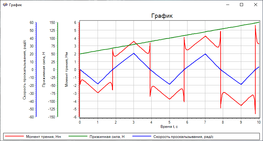 Под действием крутящего момента, меняющего знак, тело совершает возвратно-вращательное движение. Момент сил трения изменяется в зависимости от скорости проскальзывания и прижимной силы.