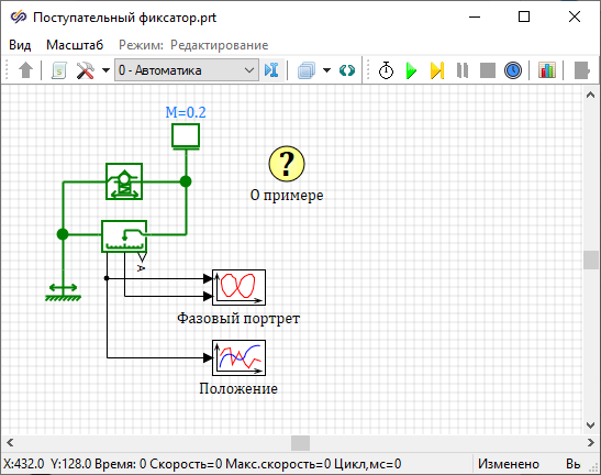 Блок "Масса" моделирует движение тела с ненулевой начальной скоростью. Блок