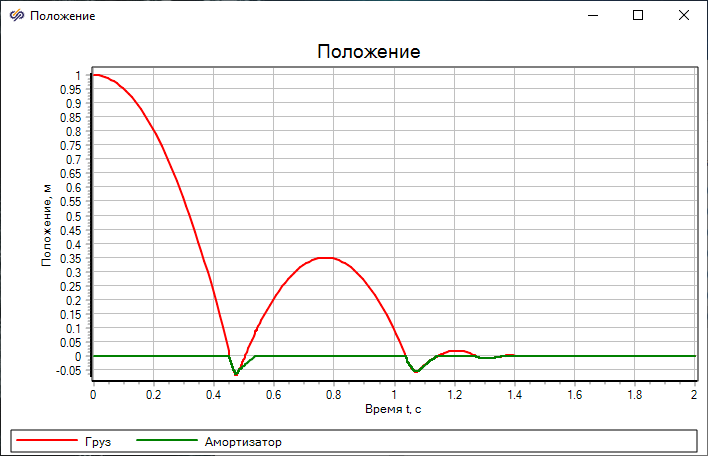 Данный проект демонстрирует возможности библиотеки "Механика" по моделированию динамики твердых тел под действием вязкоупругих сил на примере падения груза массой 100 кг на закрепленную на плече площадку массой 1 кг под действием силы тяжести. При падении груза происходит угловая деформация торсионного амортизатора (скручивание), плечо не изгибается.